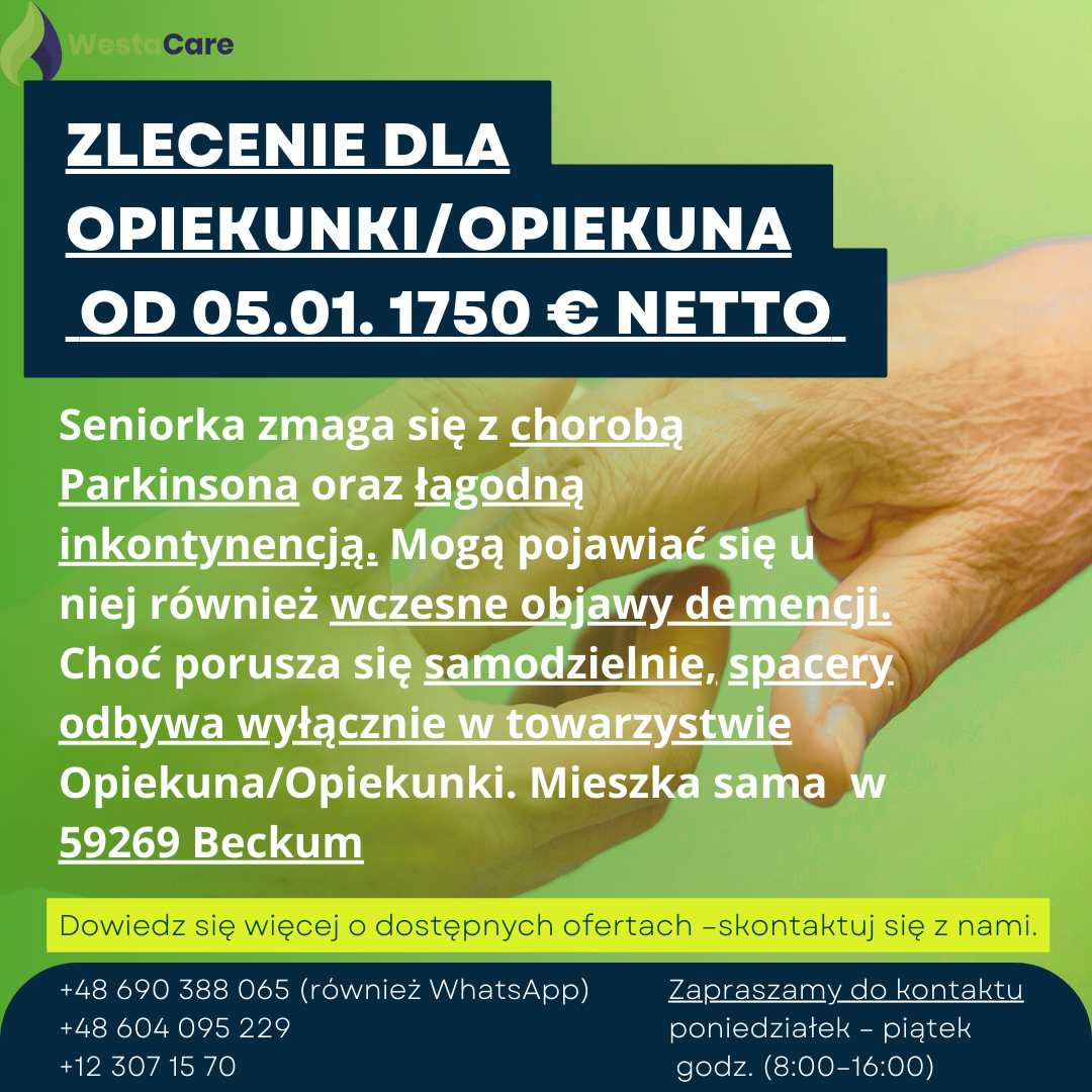 Zlecenie dla Opiekunki/Opiekuna od 05.01. 1750 € netto