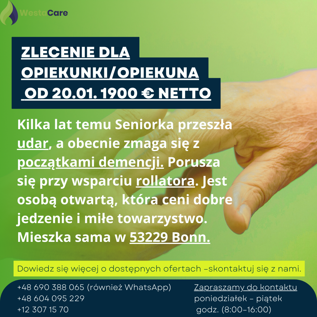 Zlecenie dla Opiekunki/Opiekuna od 20.01. 1900 € netto