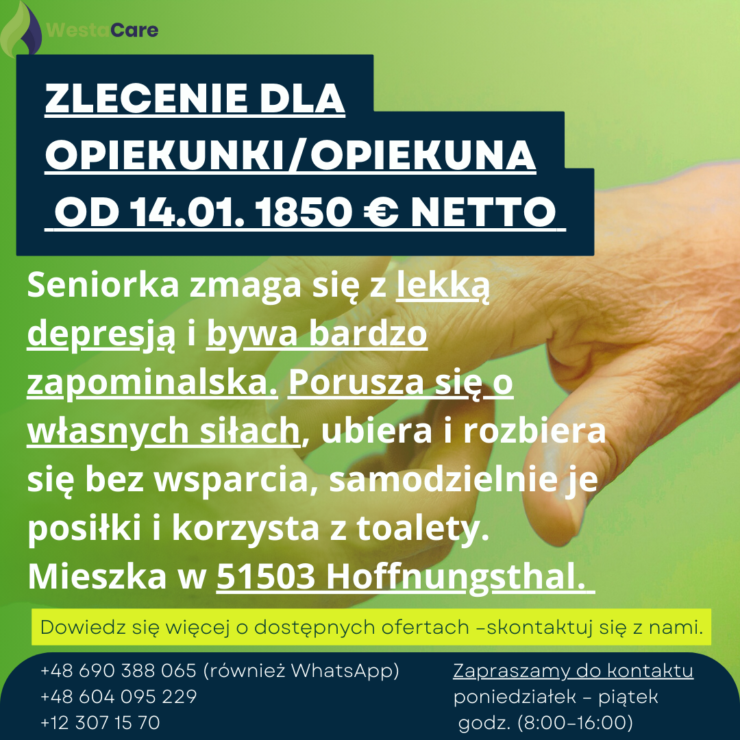 Zlecenie dla Opiekunki/Opiekuna od 14.01. 1850 € netto