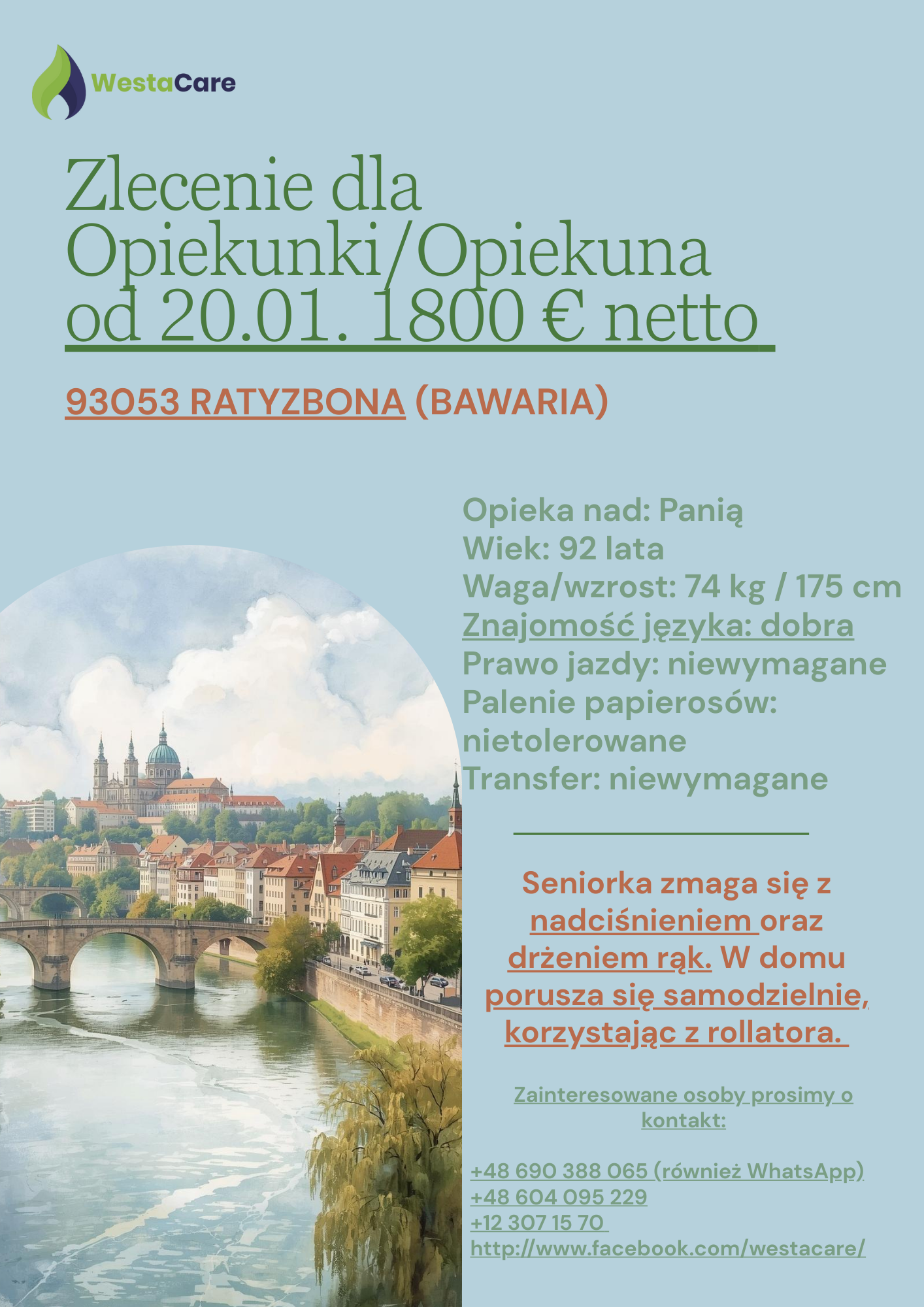 Zlecenie dla Opiekunki/Opiekuna od 20.01. 1800 € netto