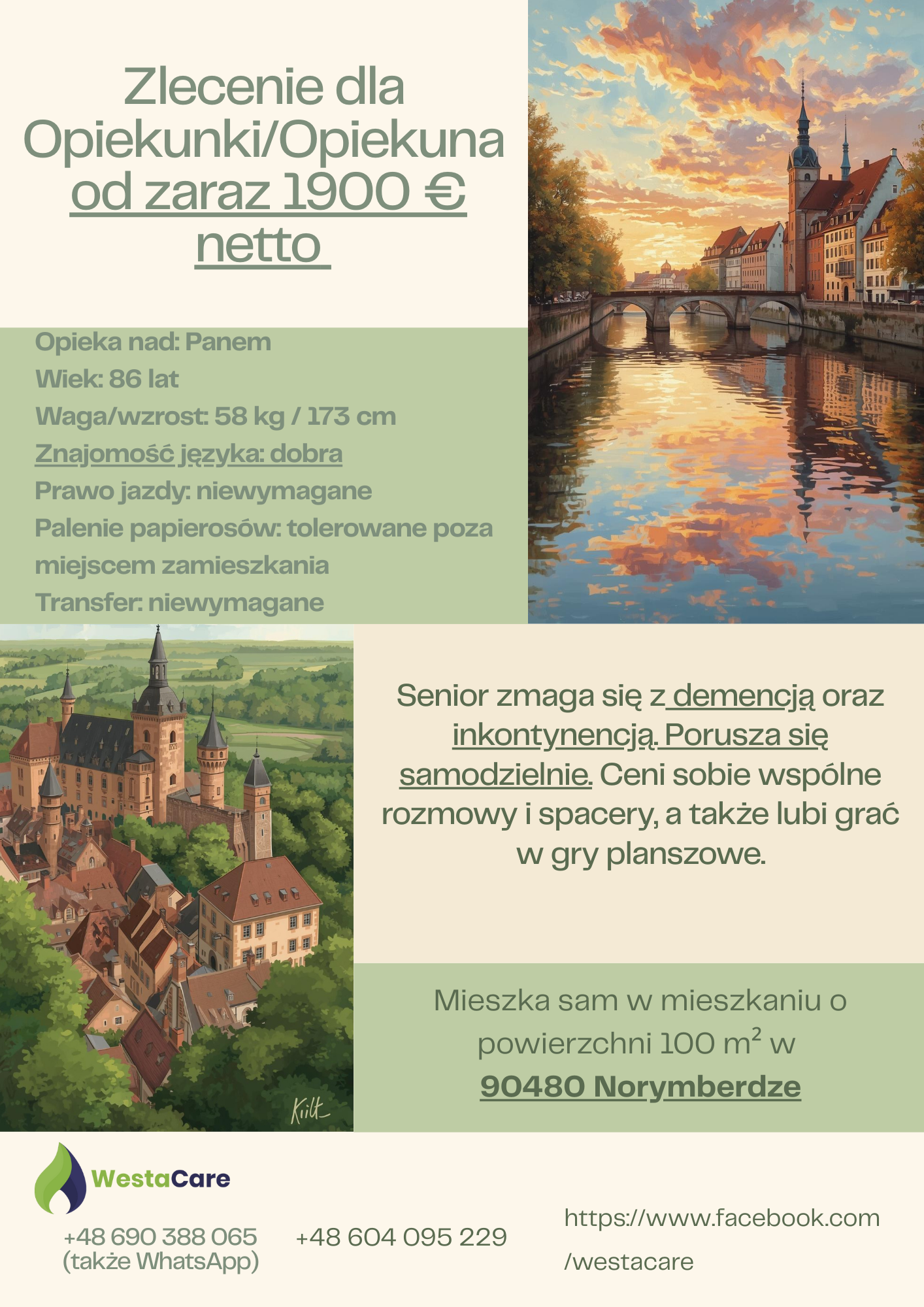 Zlecenie dla Opiekunki/Opiekuna od zaraz 1900 € netto