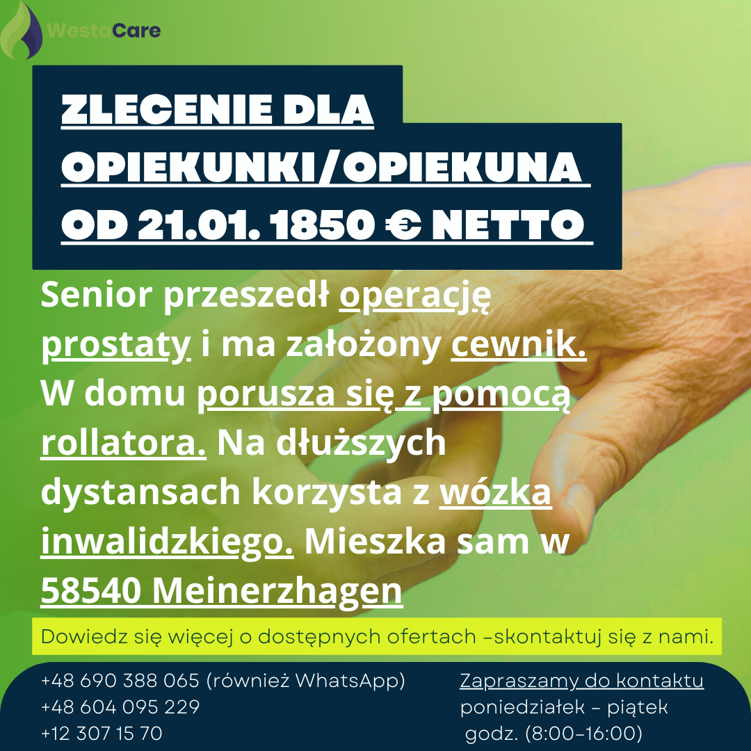 Zlecenie dla Opiekunki/Opiekuna od 21.01. 1850 € netto