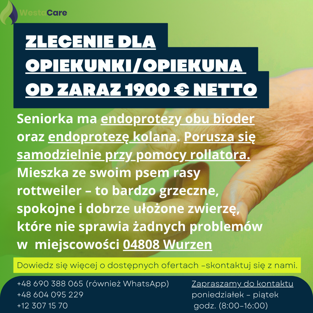 Zlecenie dla Opiekunki/Opiekuna od zaraz 1900 € netto