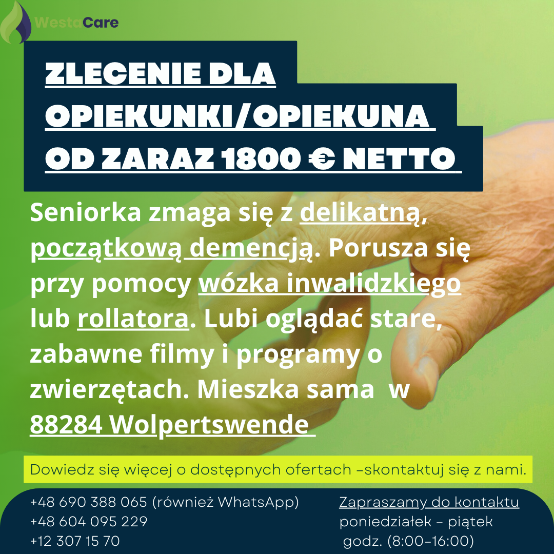 Zlecenie dla Opiekunki/Opiekuna od zaraz 1800 € netto