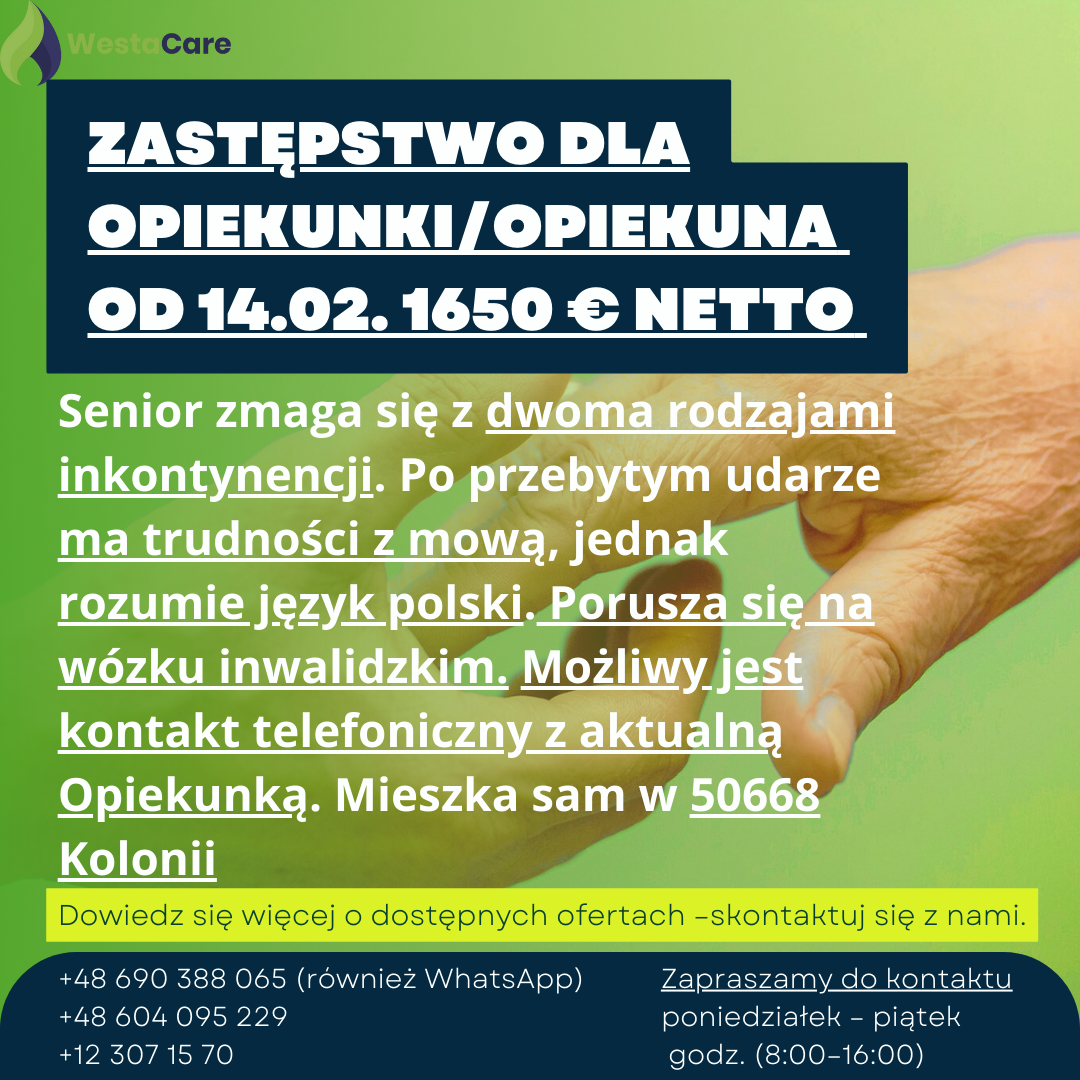 Zastępstwo dla Opiekunki/Opiekuna od 14.02. 1650 € netto