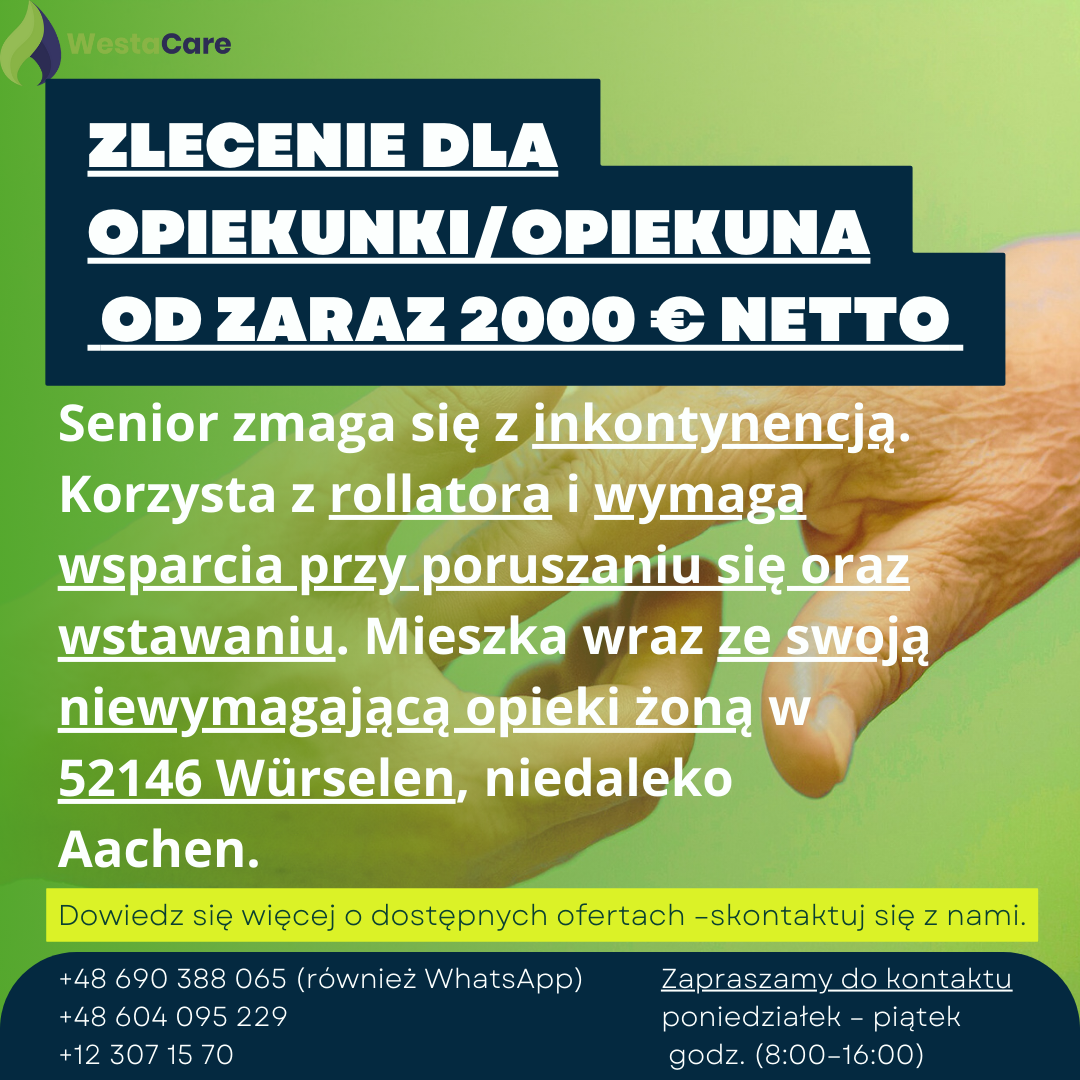 Zlecenie dla Opiekunki/Opiekuna od zaraz 2000 € netto