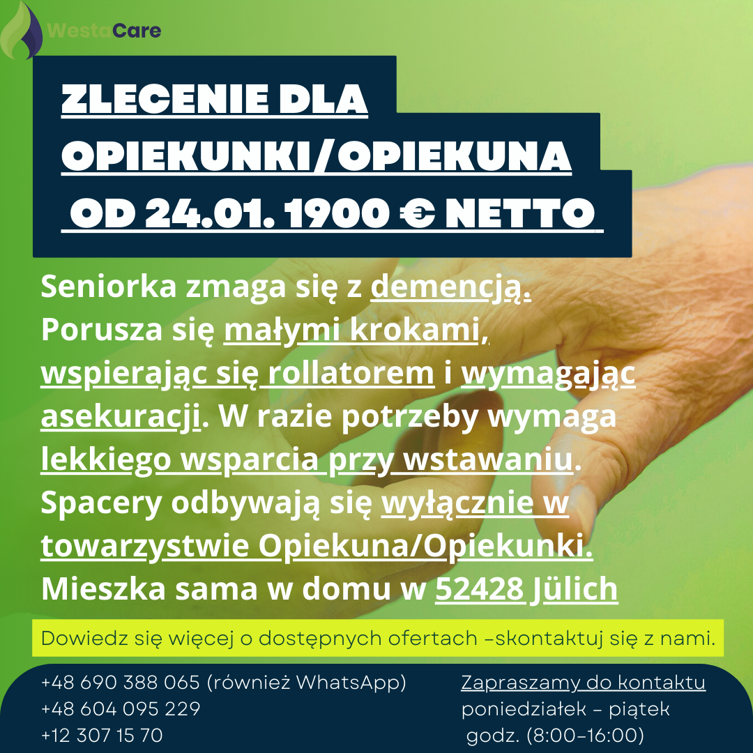Zlecenie dla Opiekunki/Opiekuna od 24.01. 1900 € netto