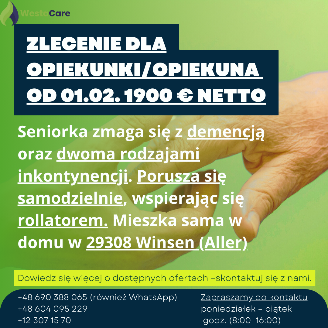 Zlecenie dla Opiekunki/Opiekuna od 01.02. 1900 € netto