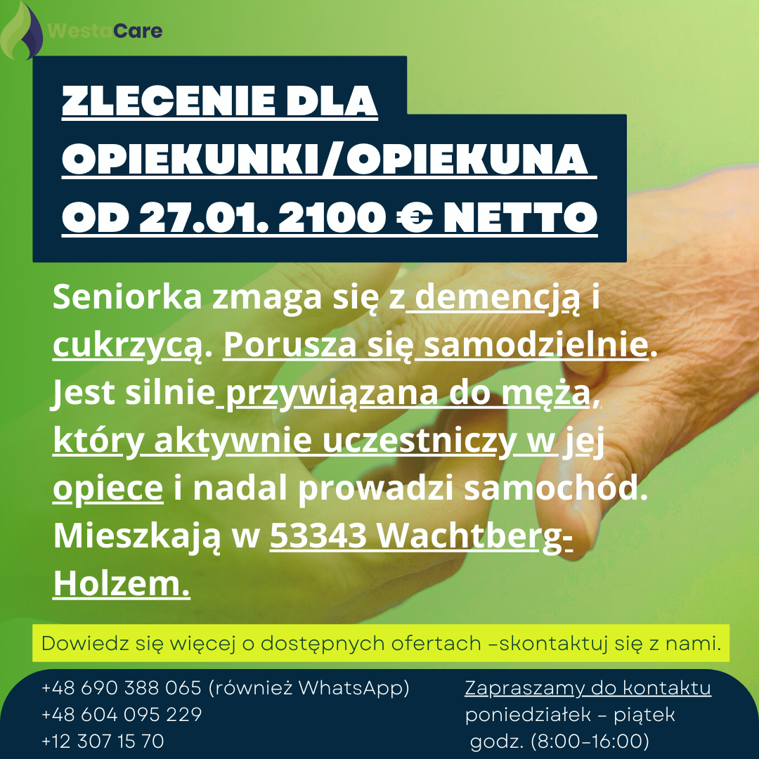 Zlecenie dla Opiekunki/Opiekuna od 27.01. 2100 € netto