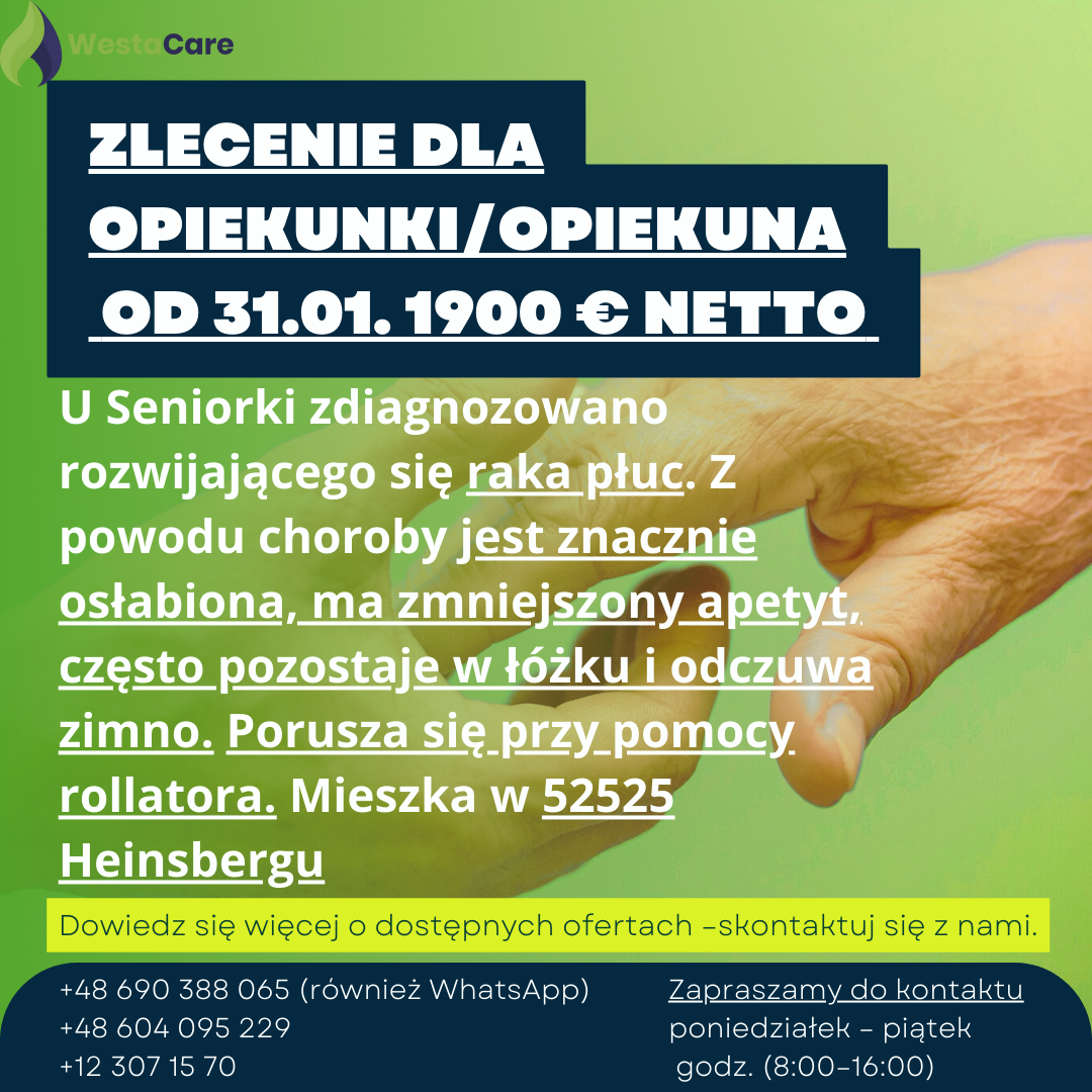 Zlecenie dla Opiekunki/Opiekuna od 31.01. 1900 € netto