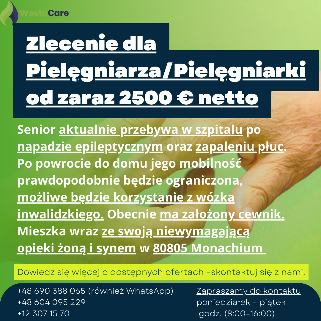 Zlecenie dla Pielęgniarza/Pielęgniarki od zaraz 2500 € netto