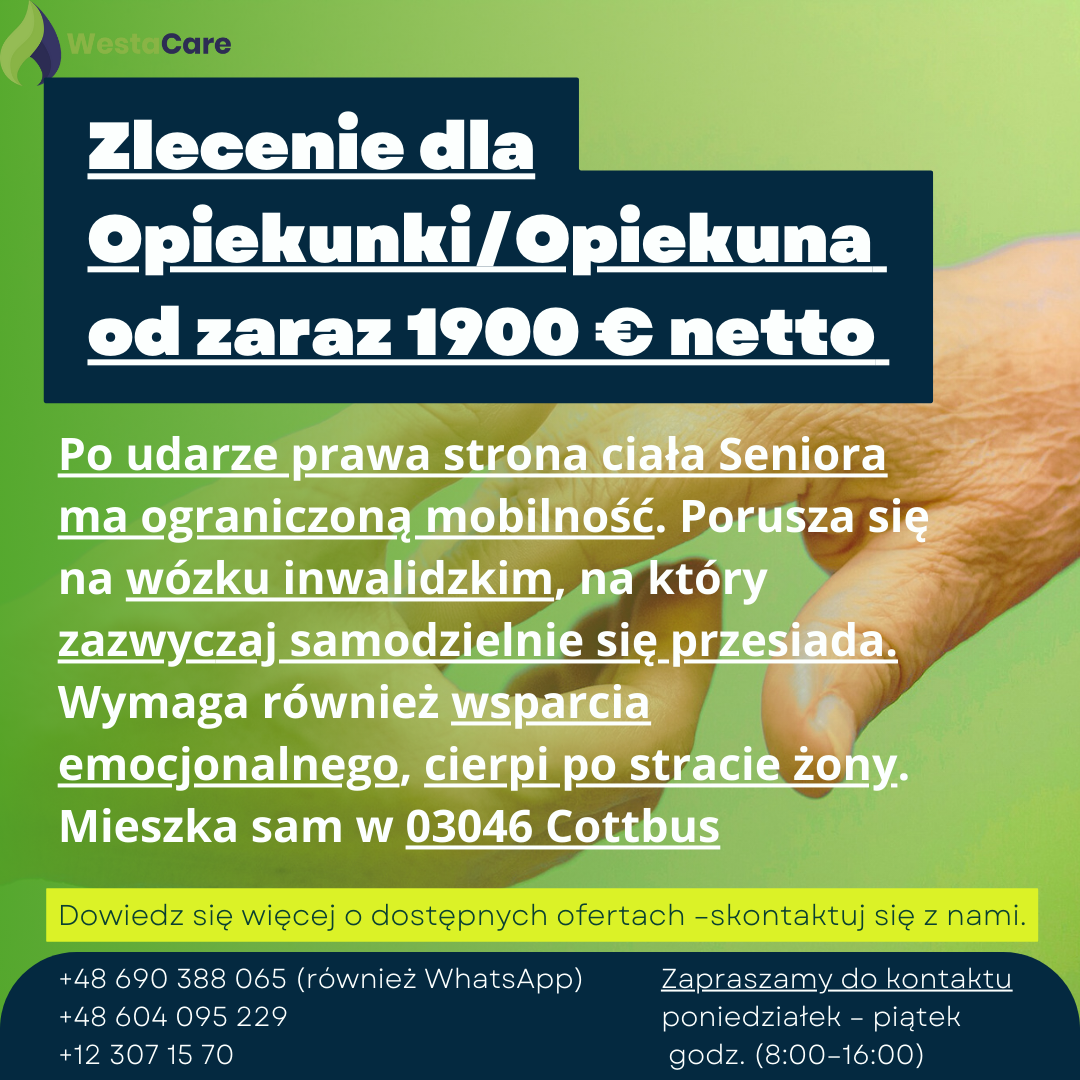 Zlecenie dla Opiekunki/Opiekuna od zaraz 1900 € netto