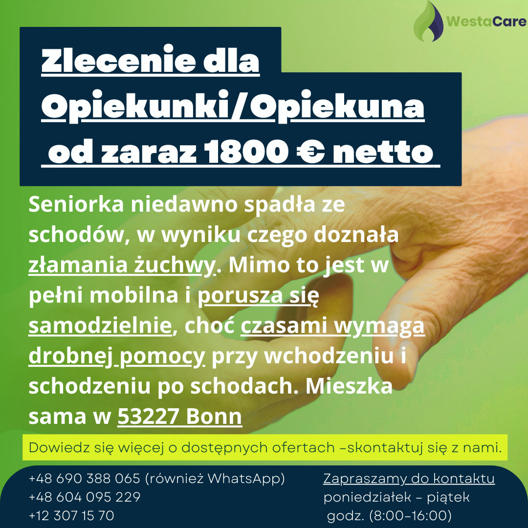 Zlecenie dla Opiekunki/Opiekuna od zaraz 1800 € netto