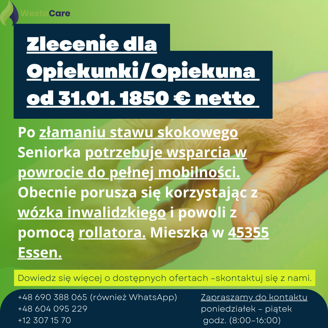 Zlecenie dla Opiekunki/Opiekuna od 31.01. 1850 € netto