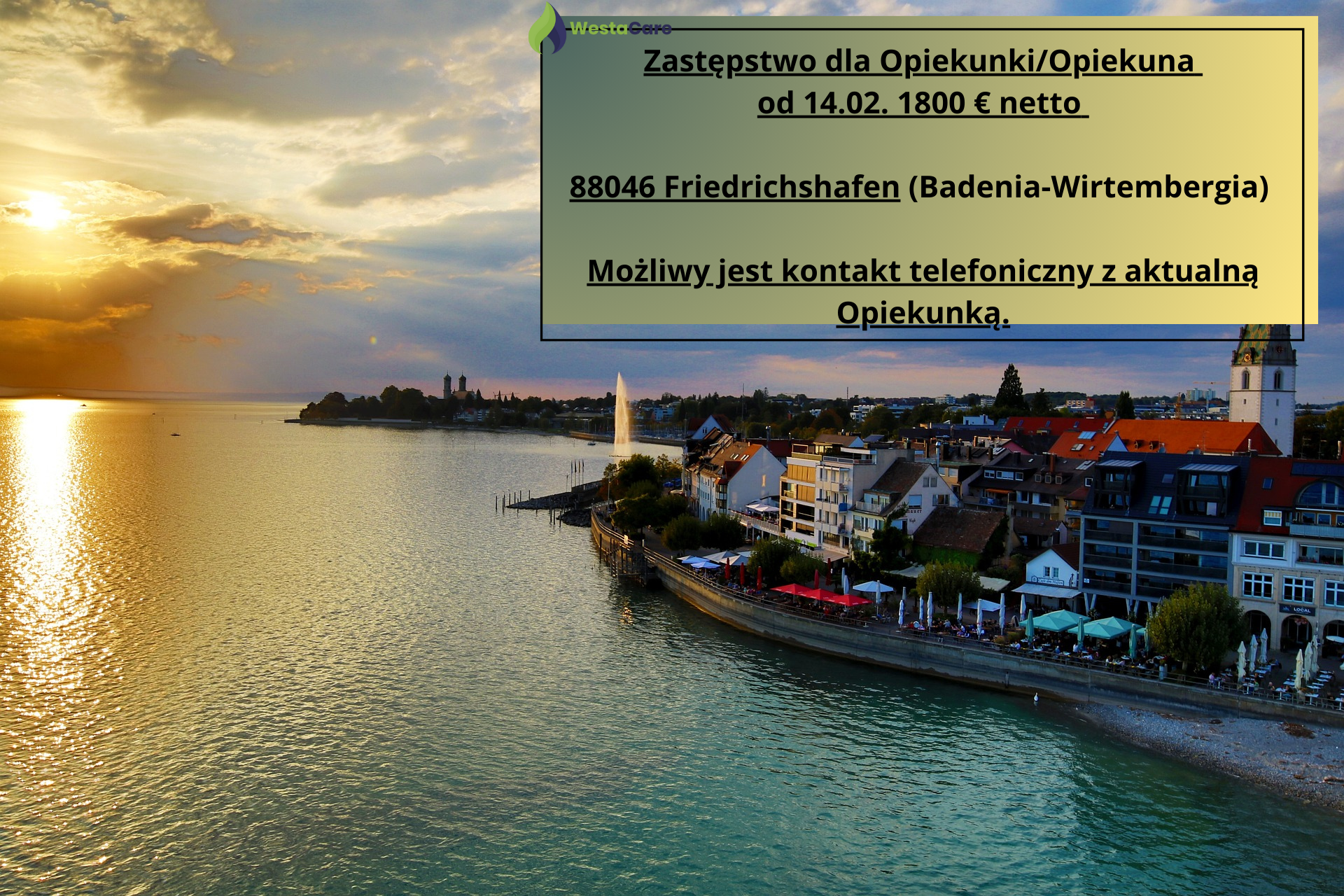 Zastępstwo dla Opiekunki/Opiekuna od 14.02. 1800 € netto