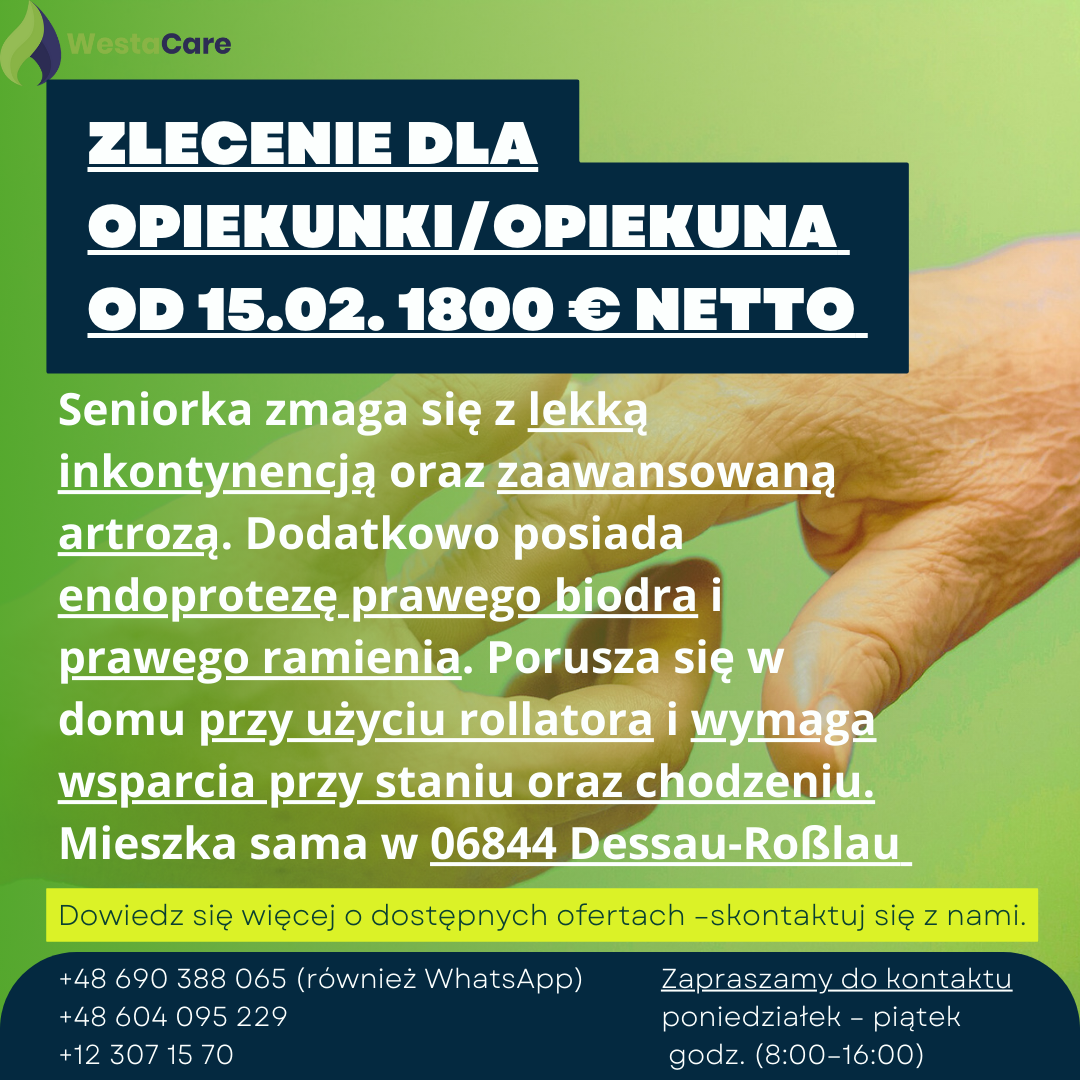 Zastępstwo dla Opiekunki/Opiekuna od 15.02. 1800 € netto