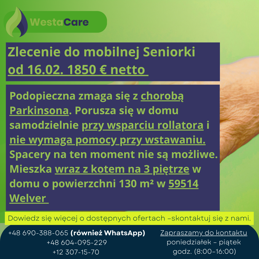 Zlecenie do mobilnej Seniorki od 16.02. 1850 € netto