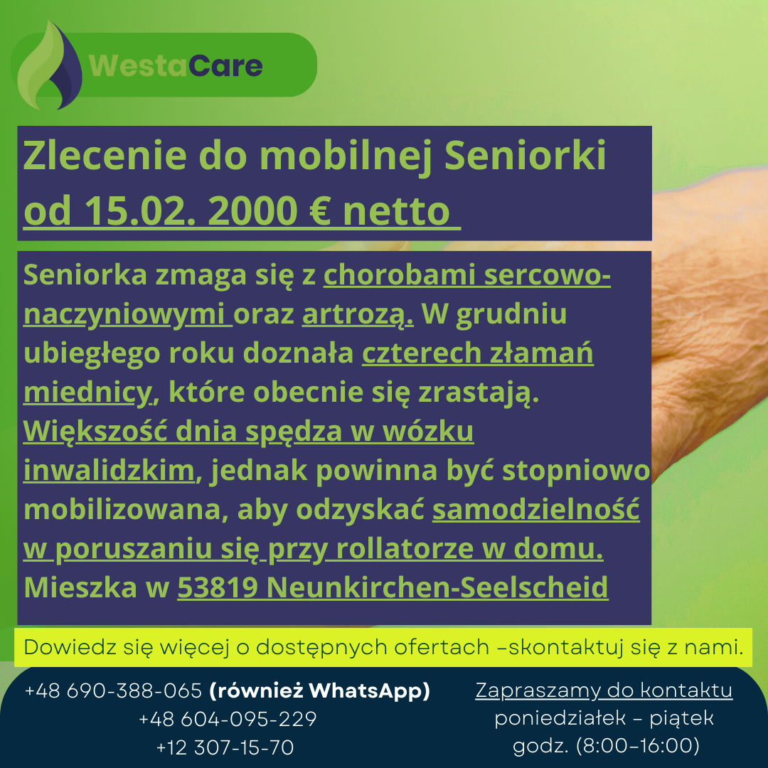 Zlecenie do mobilnej Seniorki od 15.02. 2000 € netto