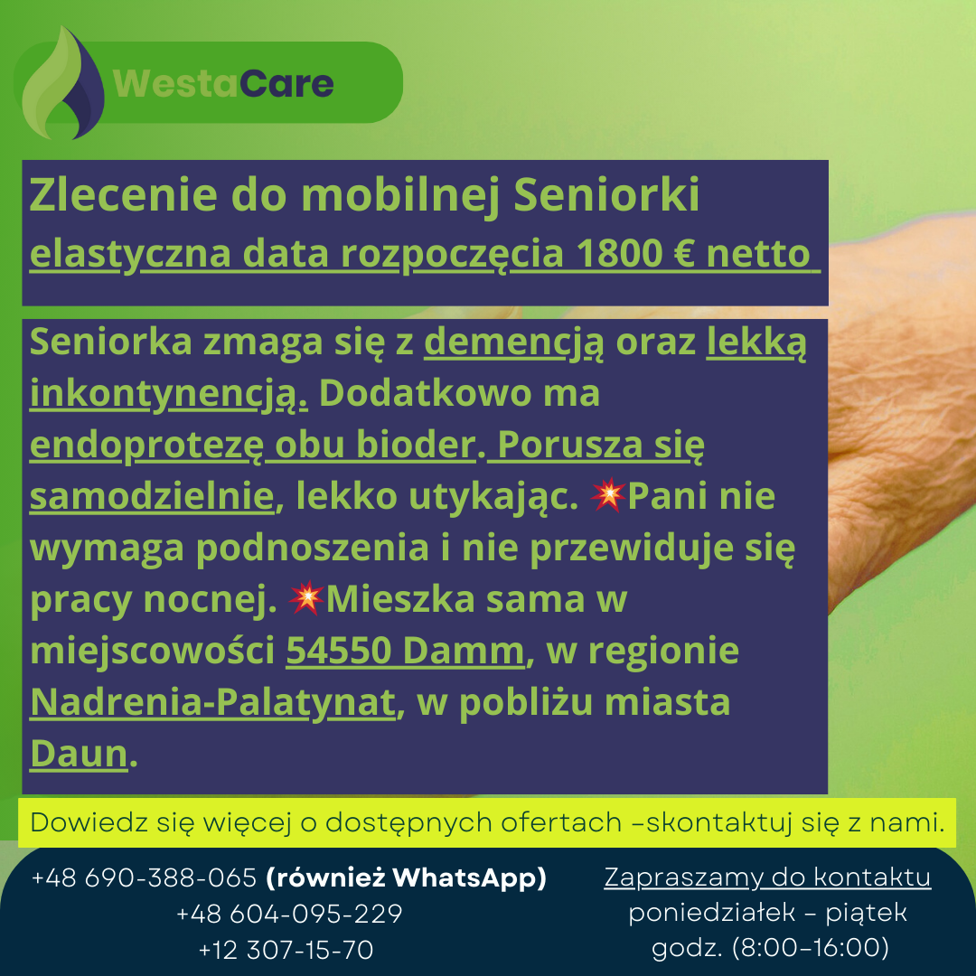 Zlecenie do mobilnej Seniorki 1800 € netto