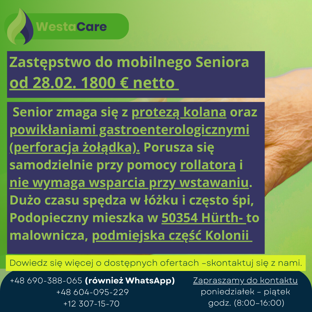 Zastępstwo do mobilnego Seniora od 28.02. 1800 € netto