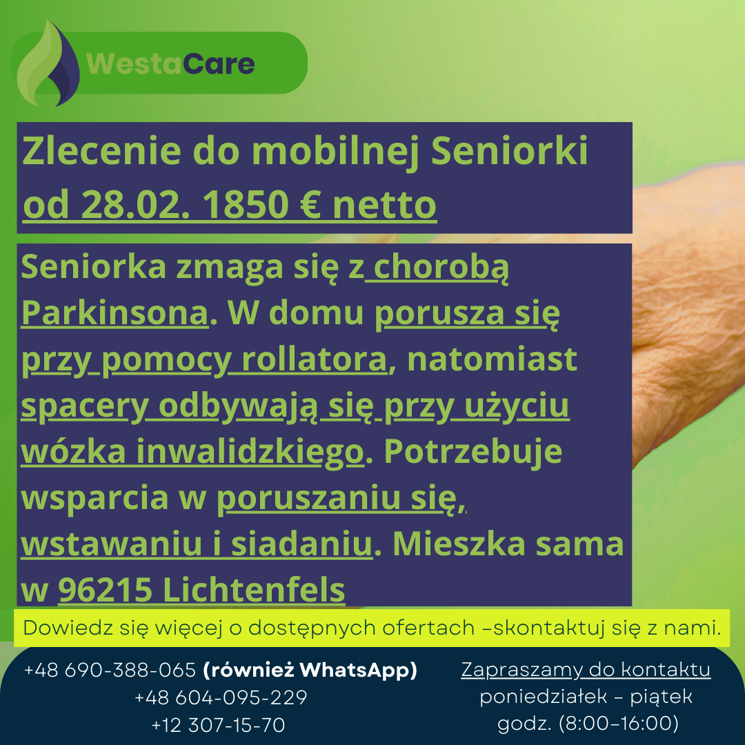 Zlecenie do mobilnej Seniorki od 28.02. 1850 € netto