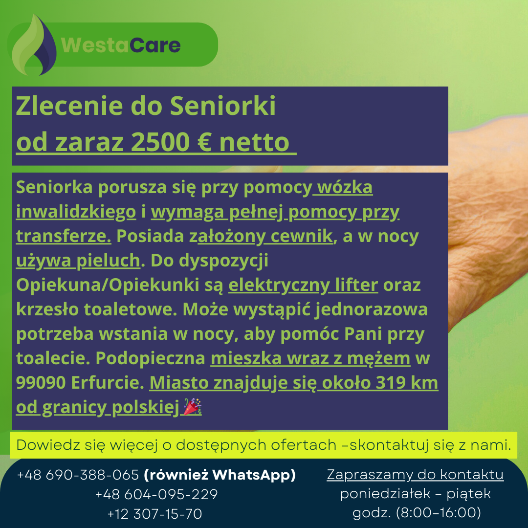 Zlecenie do Seniorki od zaraz 2500 € netto