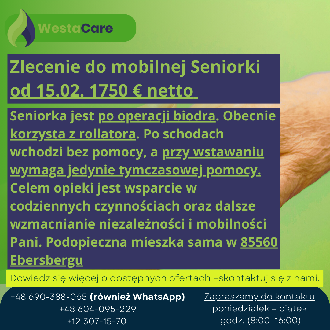 Zlecenie do mobilnej Seniorki od 15.02. 1750 € netto