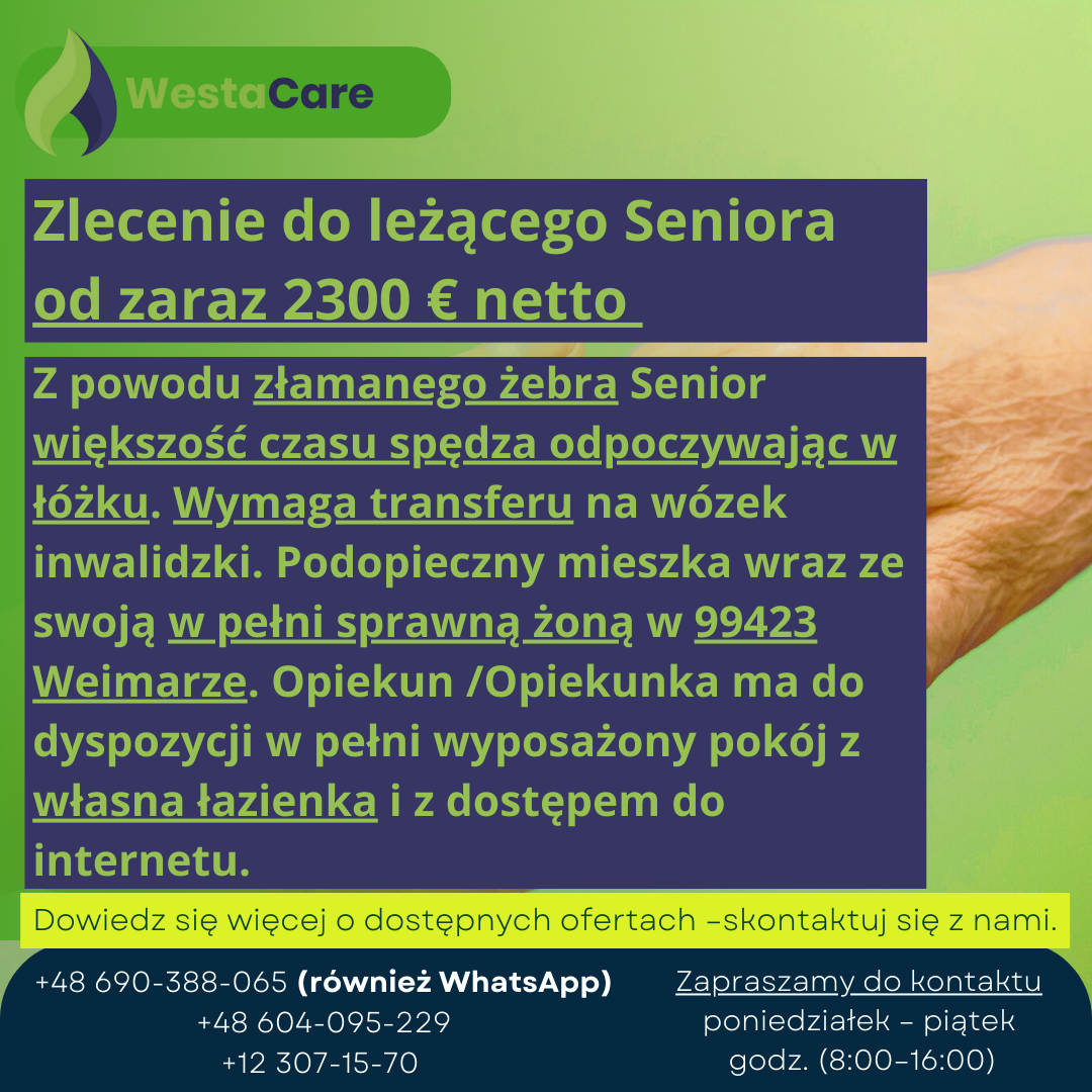 Zlecenie do leżącego Seniora od zaraz 2300 € netto