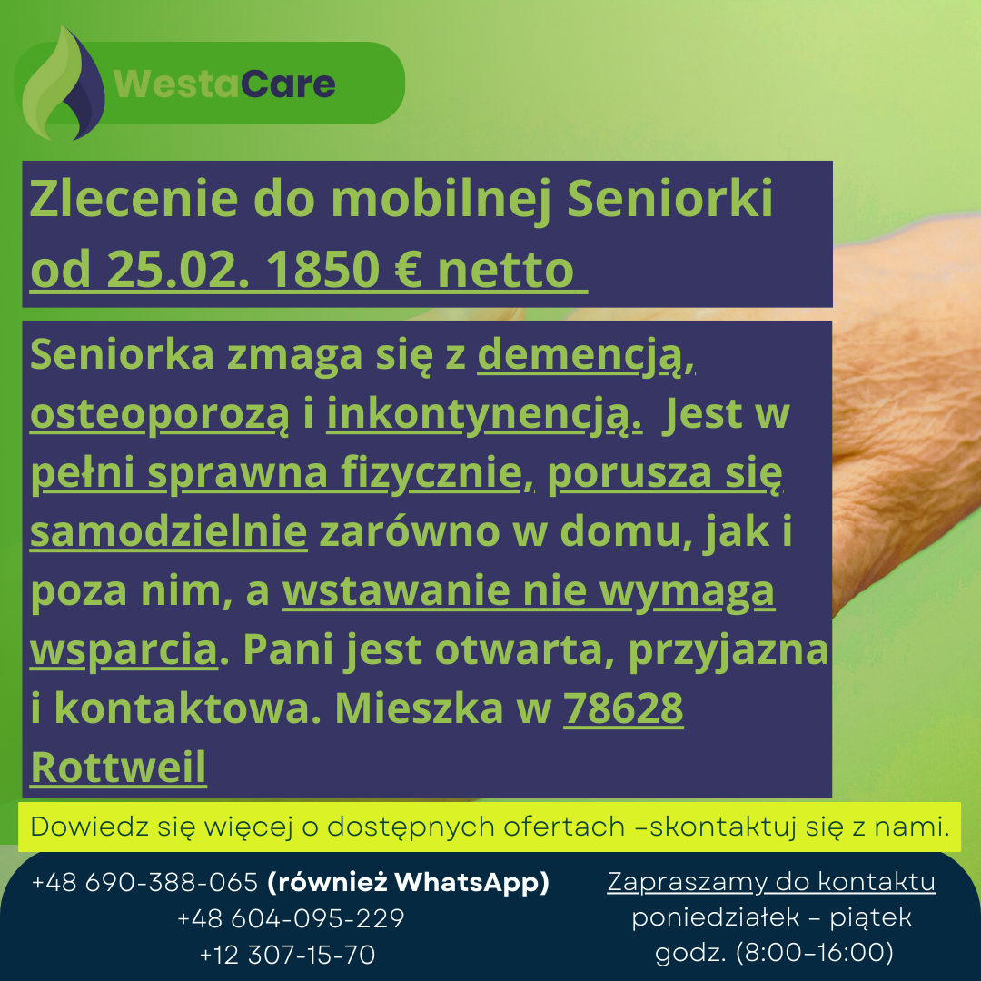 Zlecenie do mobilnej Seniorki od 25.02. 1850 € netto