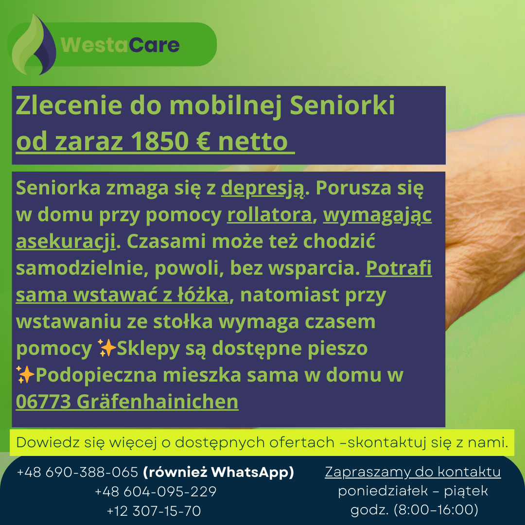 Zlecenie do mobilnej Seniorki od zaraz 1850 € netto