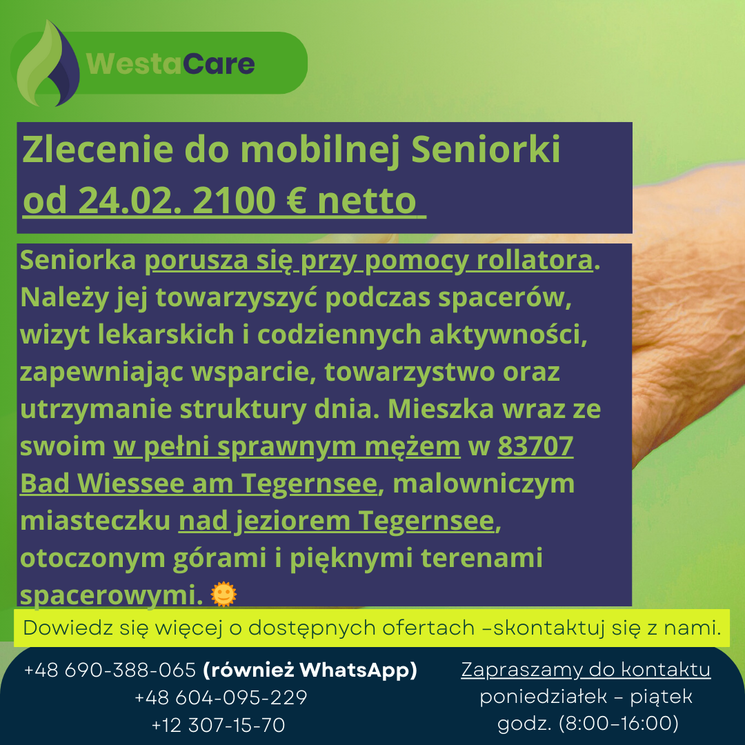 Zlecenie do mobilnej Seniorki od 24.02. 2100 € netto