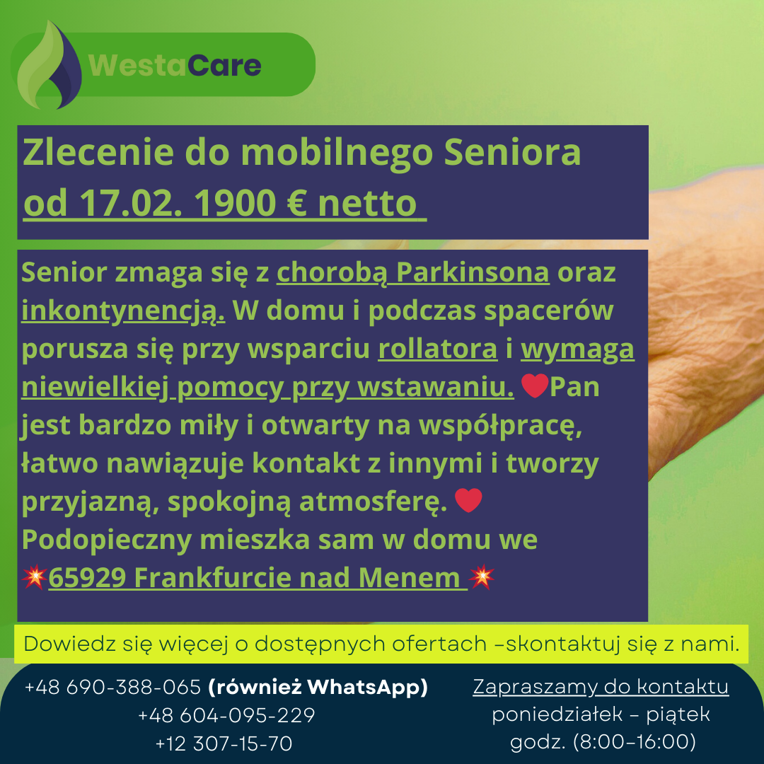 Zlecenie do mobilnego Seniora od 17.02. 1900 € netto