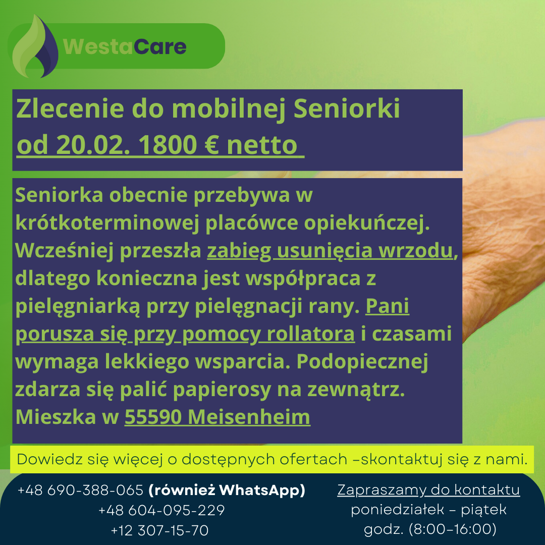 Zlecenie do mobilnej Seniorki od 20.02. 1800 € netto