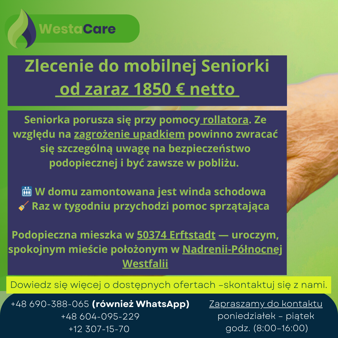 Zlecenie do mobilnej Seniorki od zaraz 1850 € netto