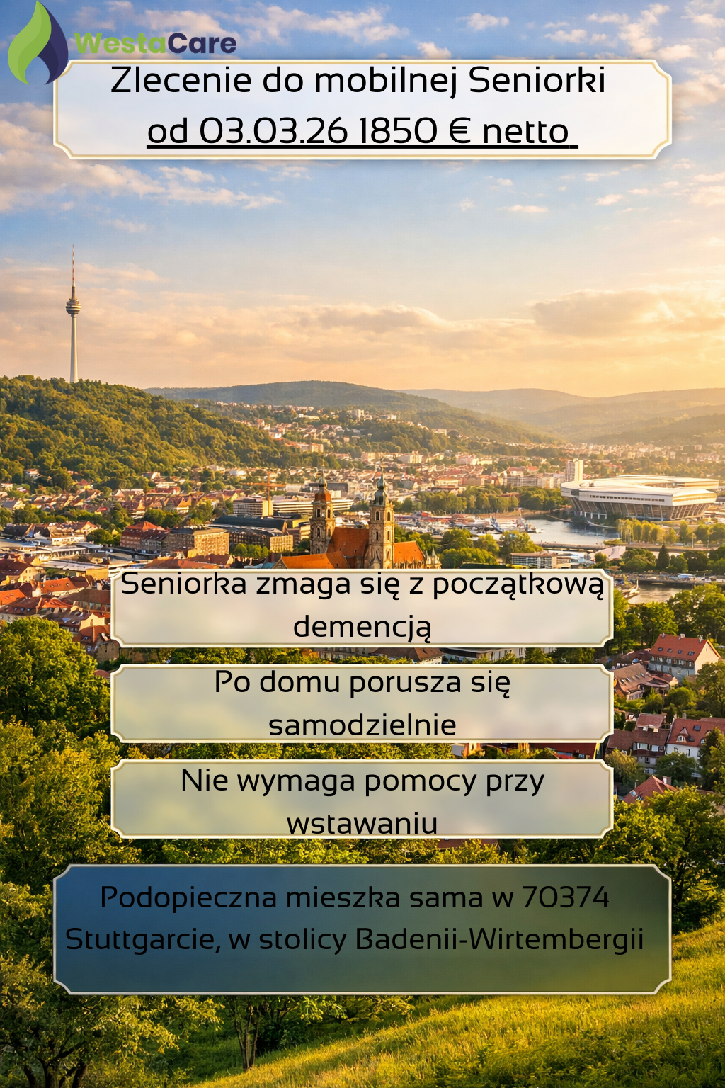 Zlecenie do mobilnej Seniorki od 03.03.26 1850 € netto