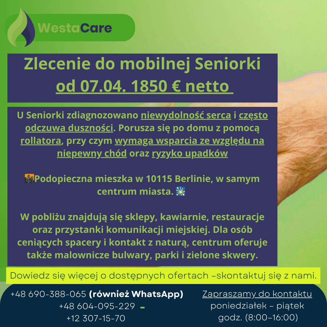 Zlecenie do mobilnej Seniorki od 07.04. 1850 € netto