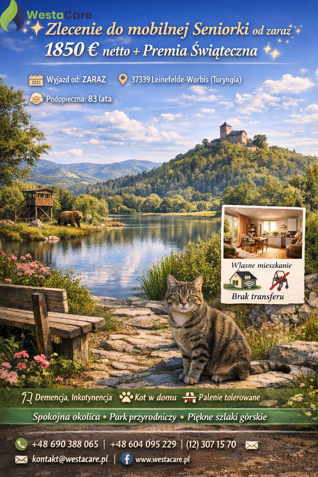 ✨ Zlecenie do mobilnej Seniorki od zaraz 1850 € netto + Premia Świąteczna ✨