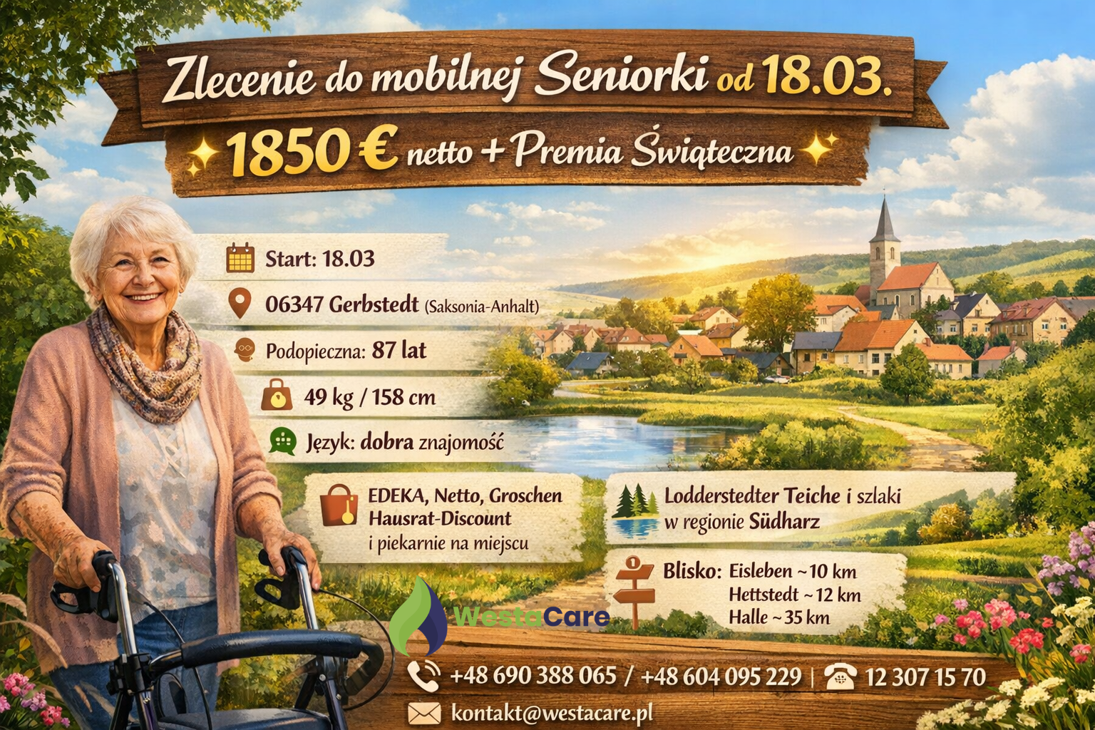 ✨ Zlecenie do mobilnej Seniorki od 18.03. 1850 € netto + Premia Świąteczna ✨
