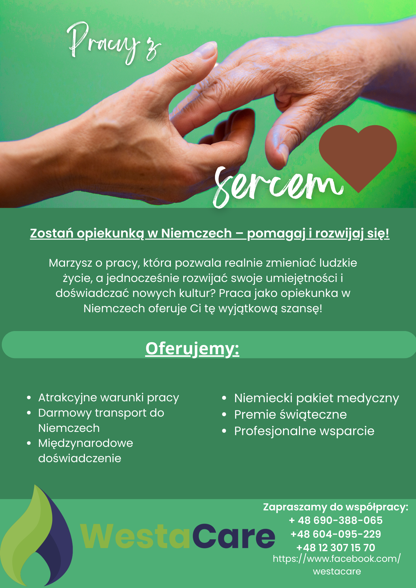 Zlecenie dla Opiekunki/Opiekuna od 17.08 1750 € netto