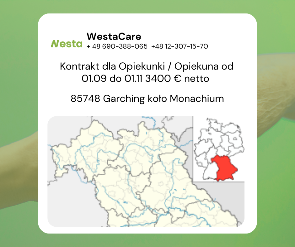 Kontrakt dla Opiekunki / Opiekuna od 01.09 do 01.11 1700 € netto