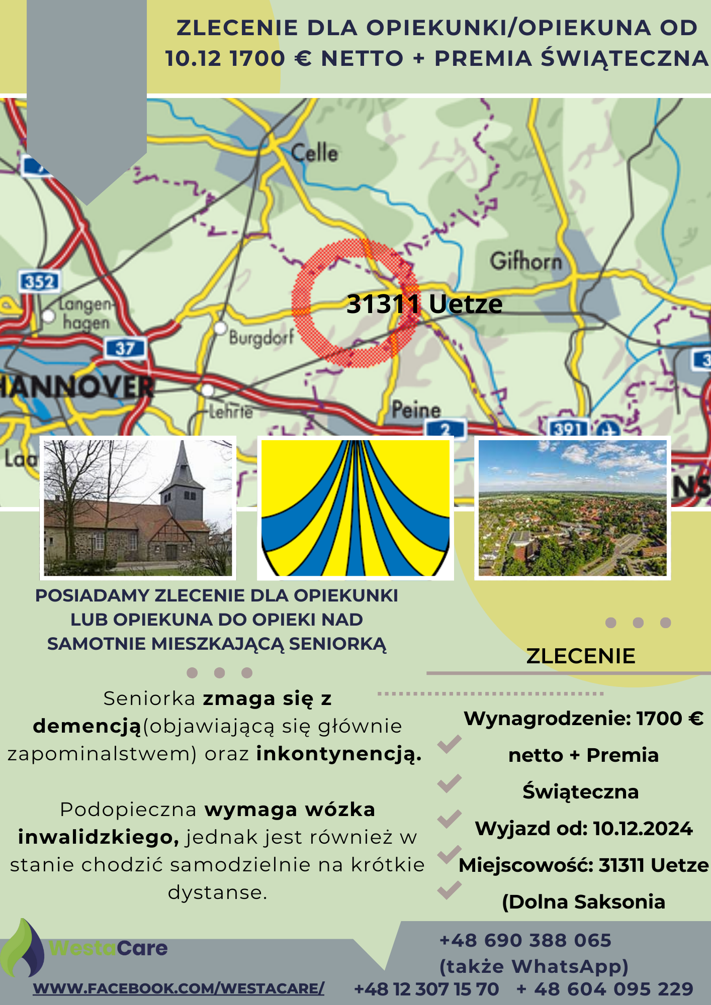 Zlecenie dla Opiekunki/Opiekuna od 10.12 1700 € netto + Premia Świąteczna