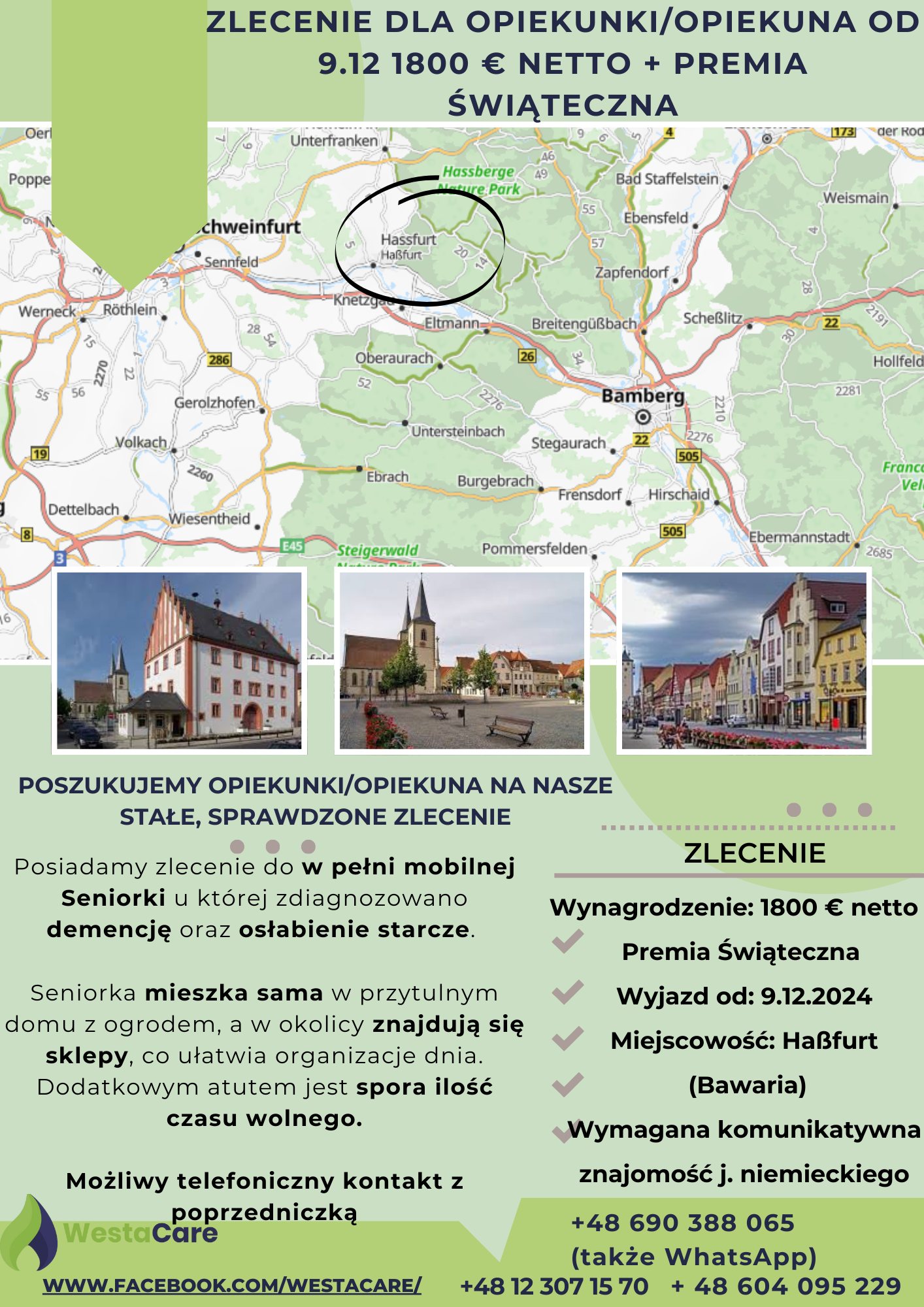 Zlecenie dla Opiekunki/Opiekuna od 9.12 1800 € netto + Premia Świąteczna