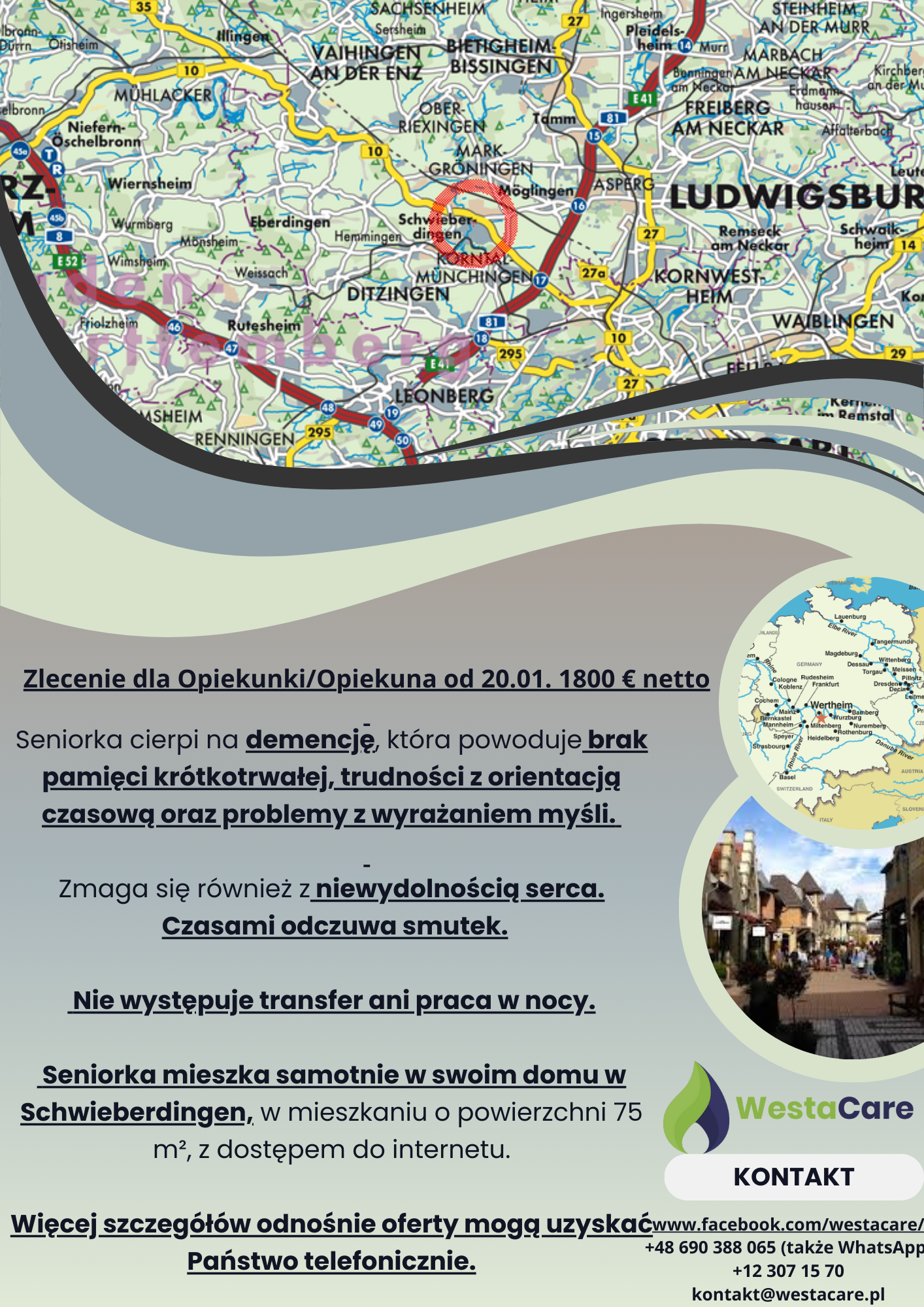 Zlecenie dla Opiekunki/Opiekuna od 20.01. 1800 € netto