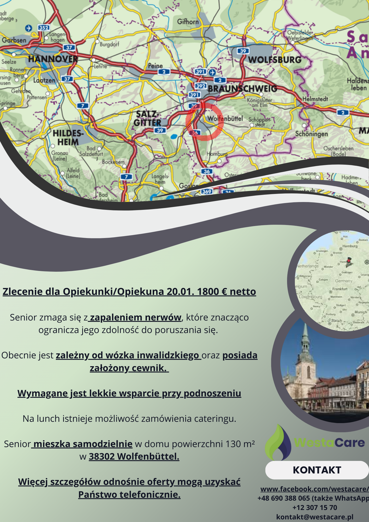 Zlecenie dla Opiekunki/Opiekuna 20.01. 1800 € netto