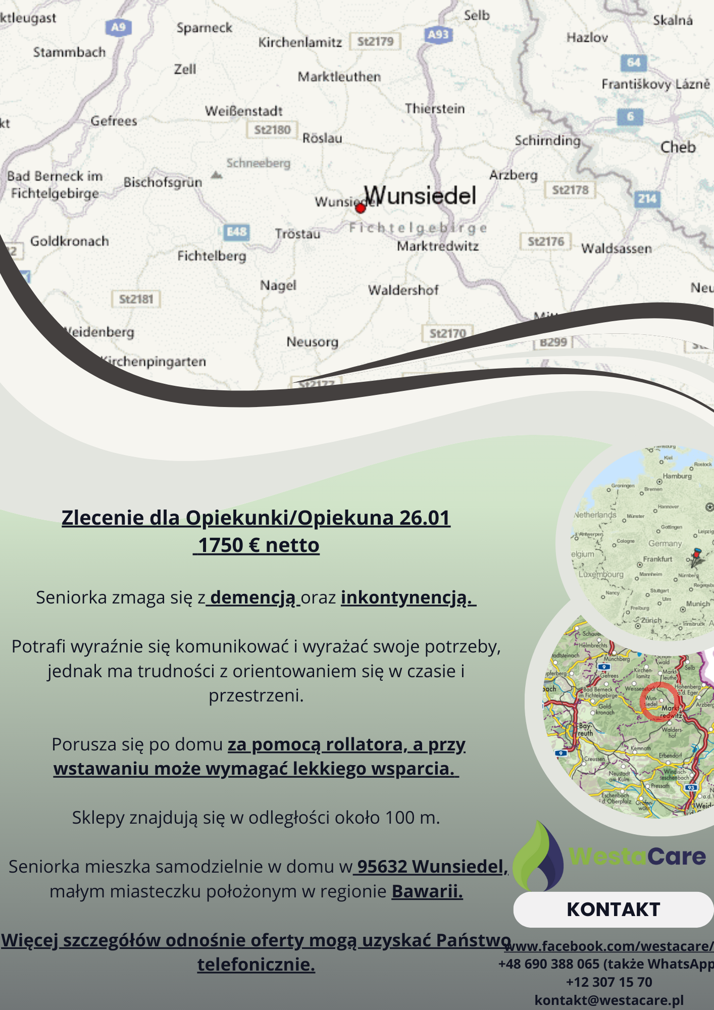 Zlecenie dla Opiekunki/Opiekuna 26.01 1750 € netto