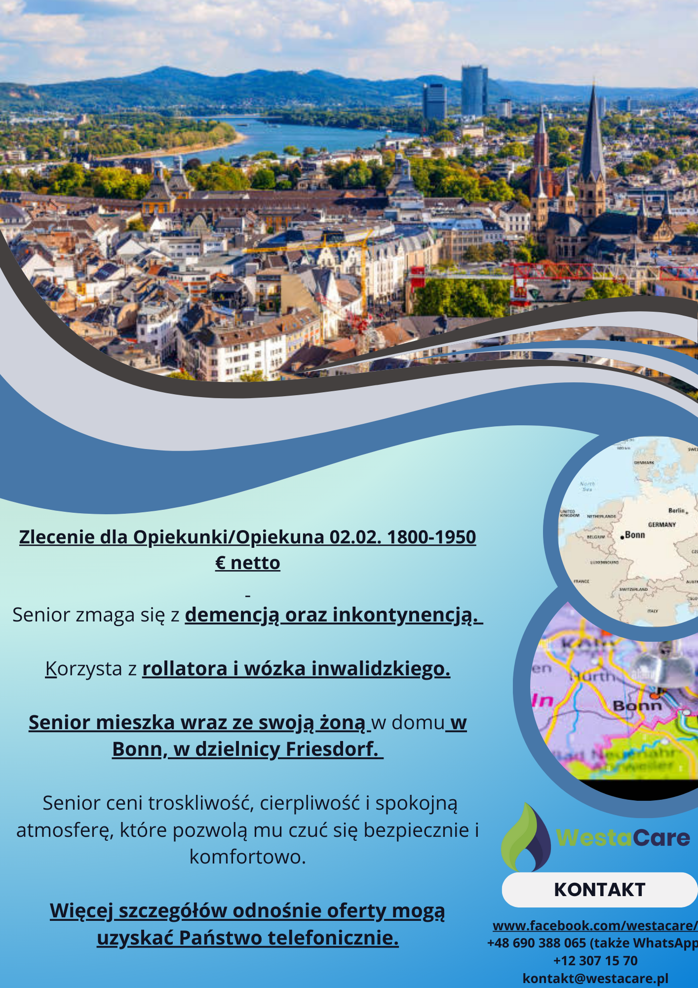 Zlecenie dla Opiekunki/Opiekuna 02.02. 1800-1950 € netto