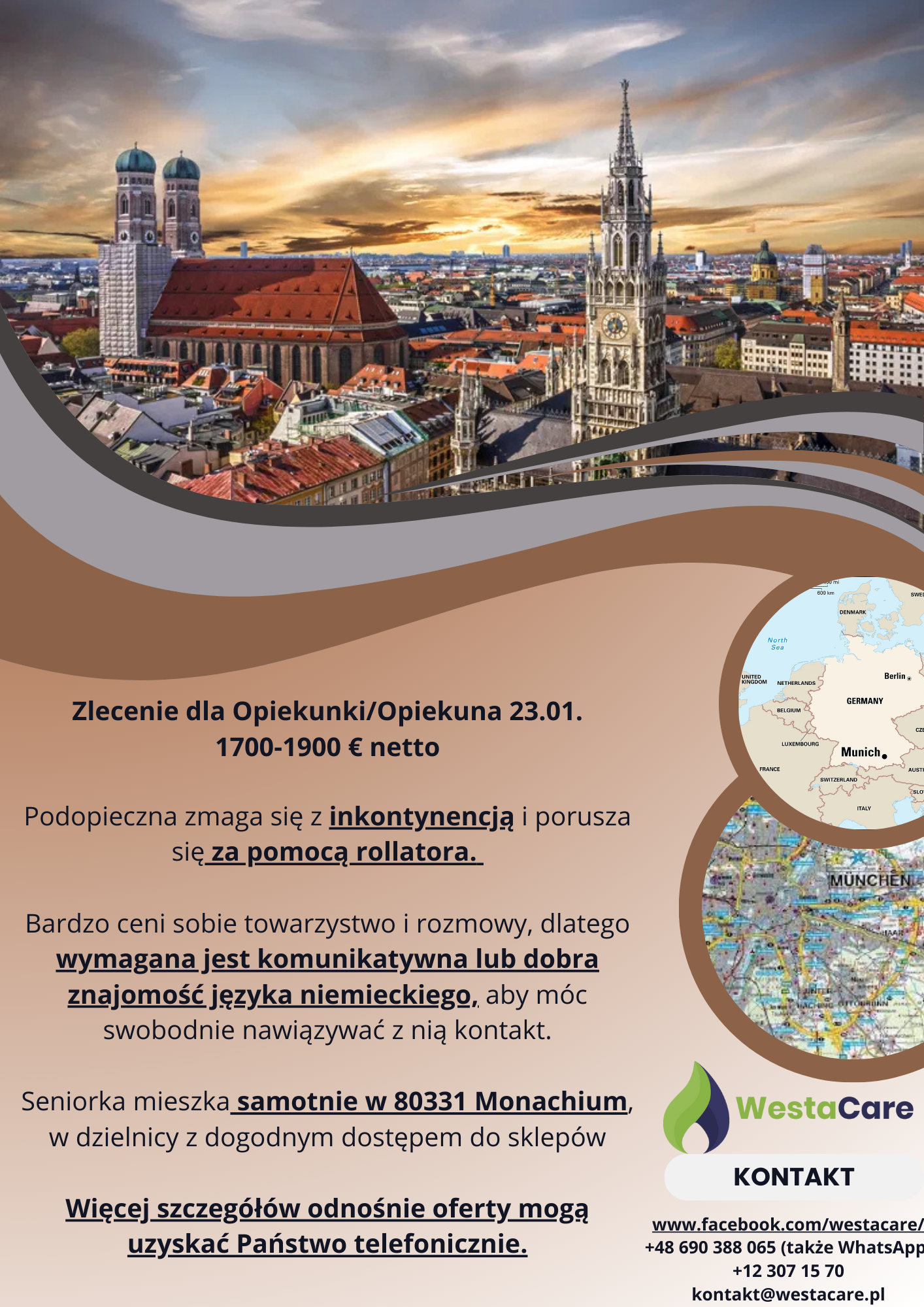 Zlecenie dla Opiekunki/Opiekuna 23.01.1700-1900 € netto