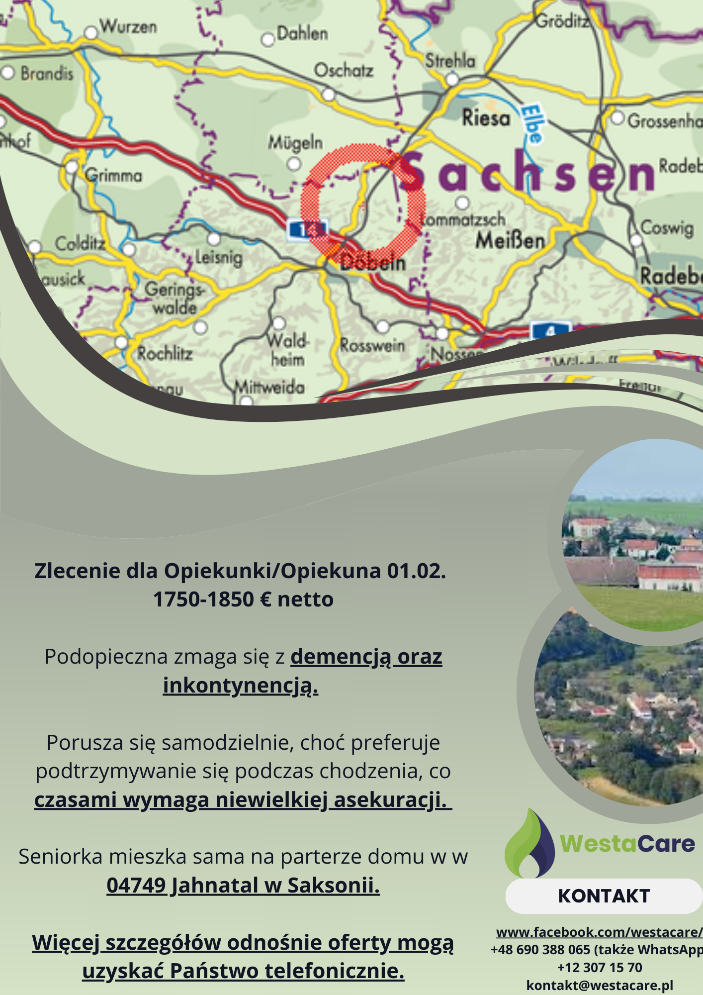 Zlecenie dla Opiekunki/Opiekuna 01.02. 1750-1850 € netto