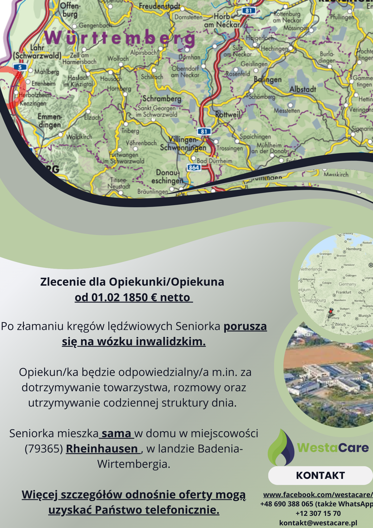 Zlecenie dla Opiekunki/Opiekuna od 01.02 1850 € netto
