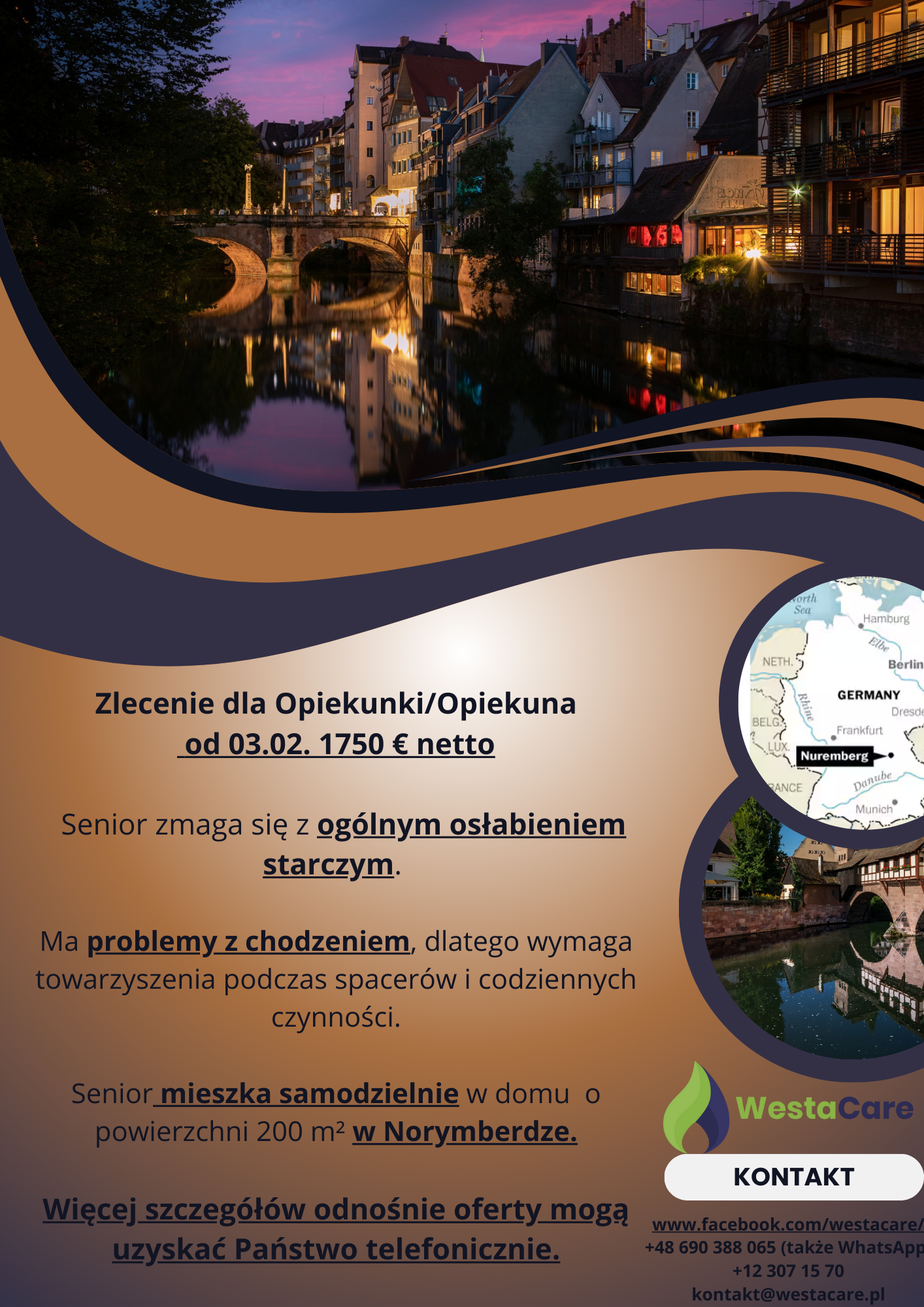 Zlecenie dla Opiekunki/Opiekuna od 03.02. 1750 € netto